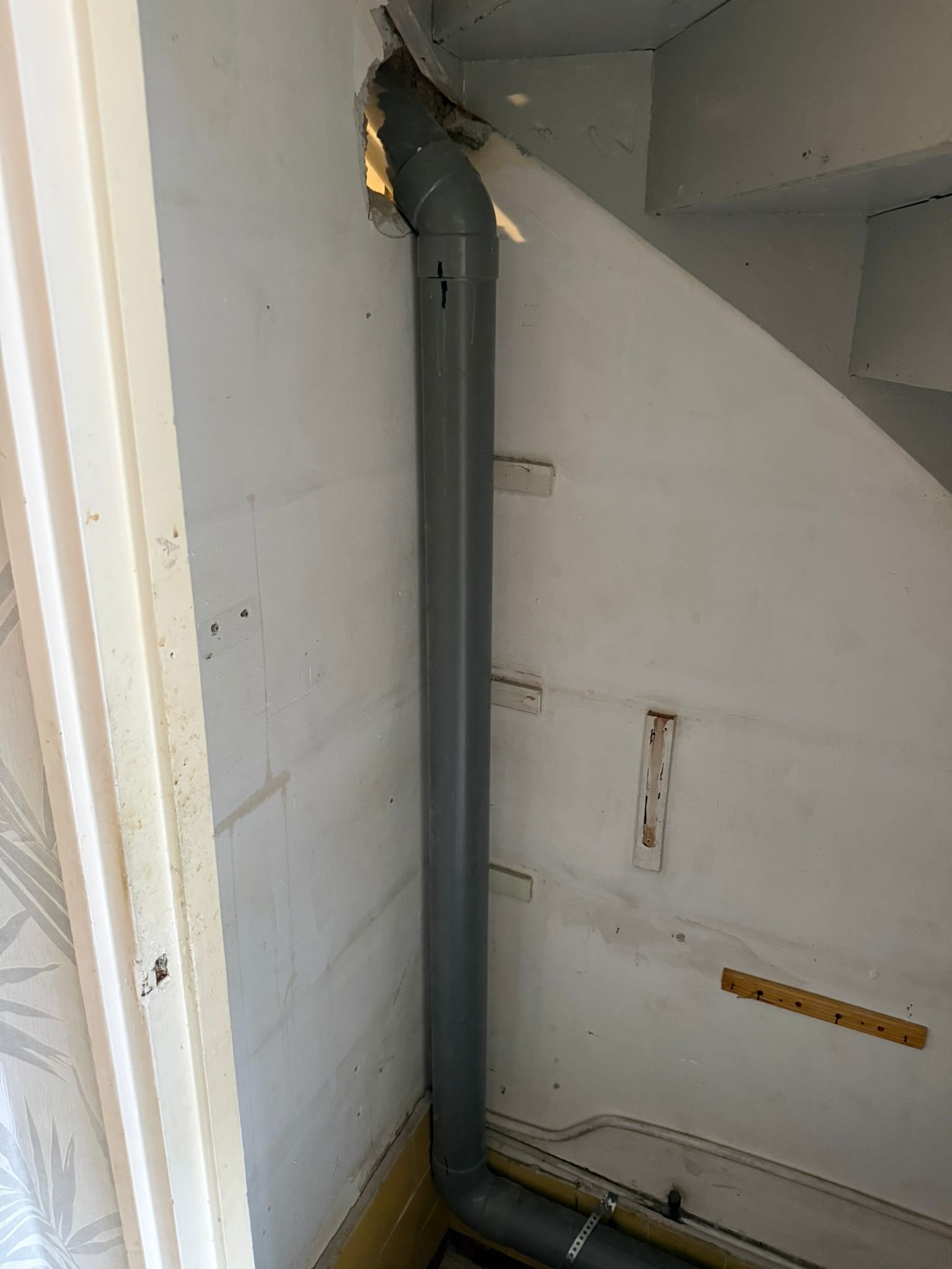 Hier hebben wij een nieuwe afvoerleiding geplaatst en aangesloten om een betrouwbare waterafvoer te garanderen.